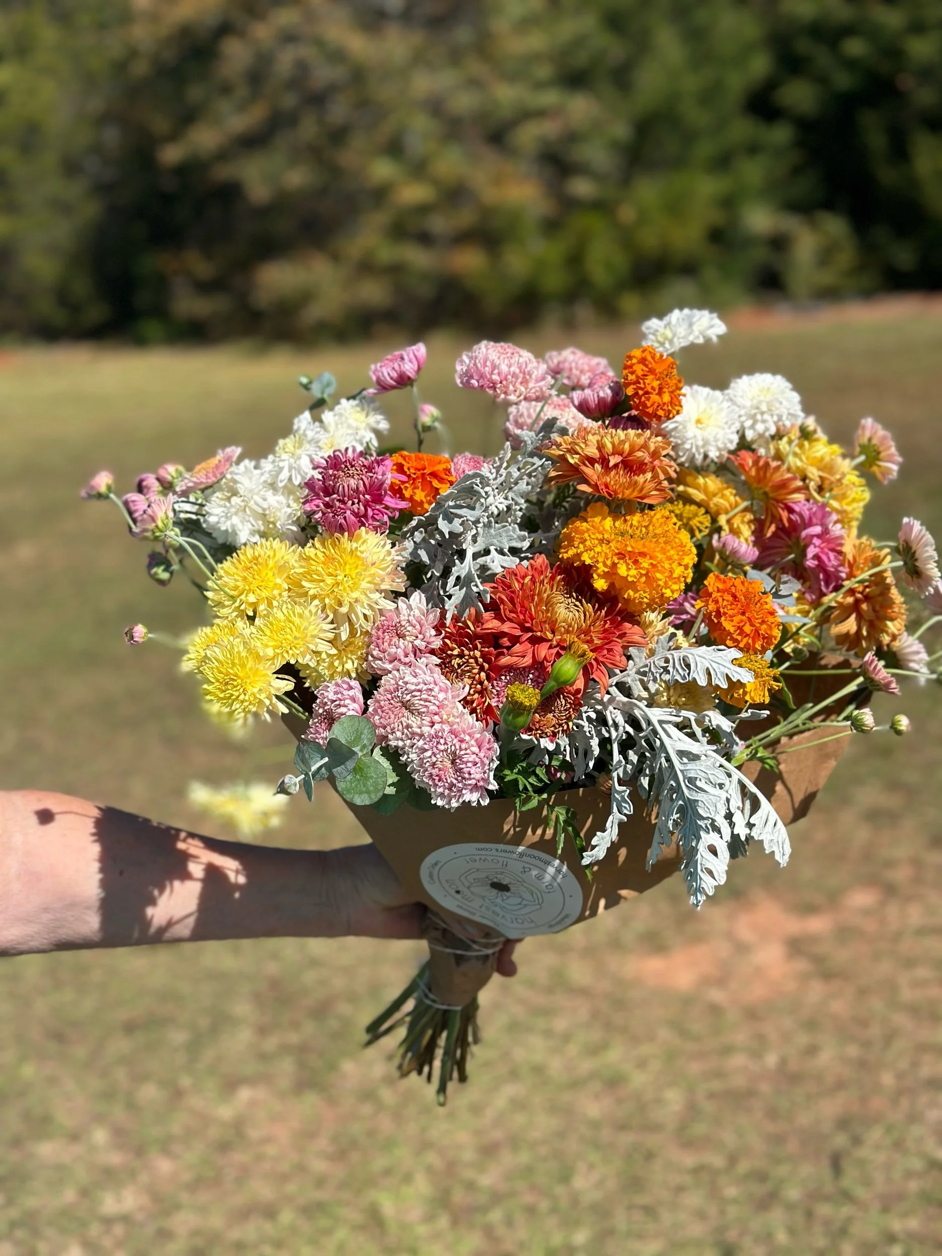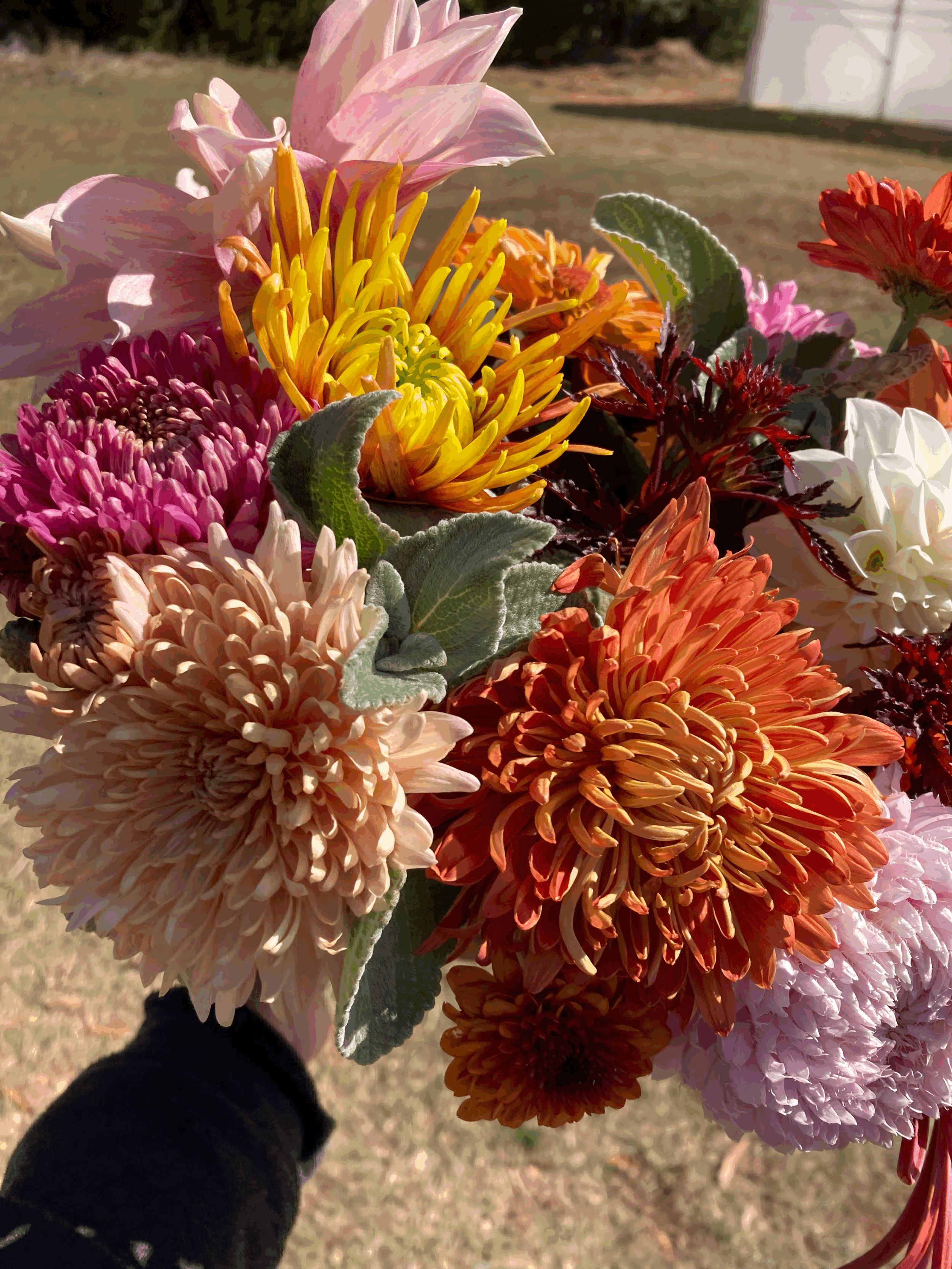 Heirloom chrysanthemums in an array of sizes, colors and shapes. These long-lasting beauties will brighten your home for 7 days or more. A generous bundle of 20-25 stems.